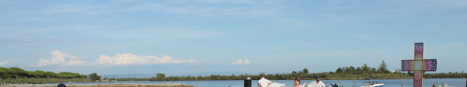 Gemeinsam mit ca. 300-350 Jugendlichen fahren die ca. 50 Konfis der 7 Gemeinden aus Augsburg Mitte auf eines der Camps, die nacheinander auf einem Campingplatz bei Grado in Italien stattfinden. Dort bildet unsere Gruppe ein eigenes kleines "Dorf", in dem wir zusammen essen, uns mit Themen - wie Gott, Jesus, Taufe und Abendmahl - beschäftigen, und Gemeinschaft im Kleinen erleben.
